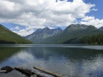 I have been on a few more hikes since my last post. I went on a thirteen-mile one to Trout Lake with a few co-worker-buds. The trailhead is just across the lake from Lake McDonald Lodge, and it starts off with a pretty demanding ascent through burned forest, which lacked shade and brought on profuse perspiration. This exploited but then eradicated my hangover. Once we had finally crested the ridge, we descended into a valley consisting of two aqua-colored lakes, Trout being one of them. They both appeared as very small bodies of water at their initial distance from our eyes, much to the dismay of Chef Tony, who was already withering over the fact that we were going to have to make the trip back up. But the views from our lunch spot at the lakeshore were special and well worth the haul. On our way back, just as we were making way from our destination, we found ourselves in the presence of a bear – as if the stress over our upcoming incline wasn’t enough. We heard a big cracking noise nearby and my bud Keith, who was leading our way down the trail, glanced over and caught a glimpse of the black bear’s face just as it was diving out of sight behind a fallen log. All I got to see was its back, which was barely visible along the top ridge of the log. It was hiding from us, and I wasn’t about to go over and tell him that everything was fine. We quickly stepped along and closed out a great day on the trail.